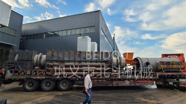 連續式麻桿炭化設備迎著藍天與白云發往安徽地區