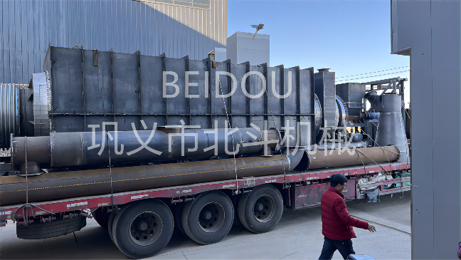 鞏義市北斗機械科技有限公司炭化設備訂單發貨量不斷,生產忙、發貨忙,公司上下齊心真抓實干,又一套連續式炭化設備裝車發往客戶現場。